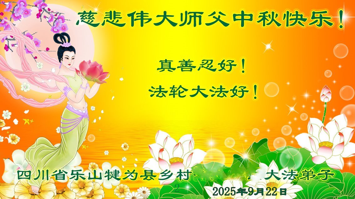 (Minghui.org) Zum Mittherbstfest senden Falun-Dafa-Praktizierende aus aller Welt Glückwünsche und Grußkarten an die Minghui-Website. Damit wünschen sie dem verehrten Meister Li Hongzhi respektvoll ein frohes Fest und danken für die Lehre des Falun Dafa mit den universellen Werten Wahrhaftigkeit, Güte und Nachsicht.