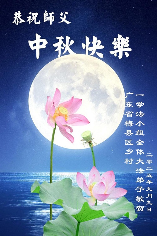 (Minghui.org) Zum Mittherbstfest senden Falun-Dafa-Praktizierende aus aller Welt Glückwünsche und Grußkarten an die Minghui-Website. Damit wünschen sie dem verehrten Meister Li Hongzhi respektvoll ein frohes Fest und danken für die Lehre des Falun Dafa mit den universellen Werten Wahrhaftigkeit, Güte und Nachsicht.