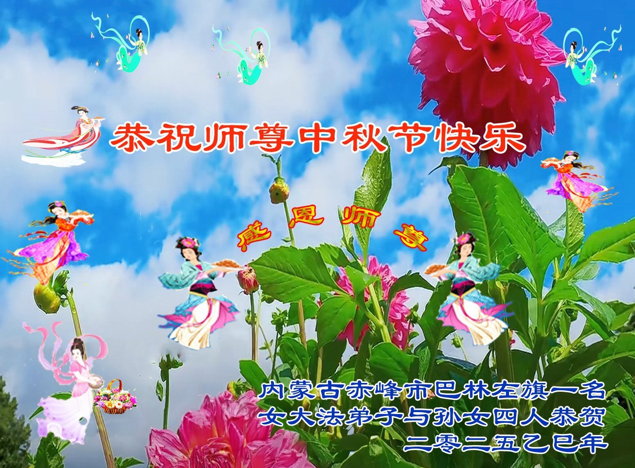 Falun-Dafa-Praktizierende in der chinesischen Provinz Innere Mongolei wünschen dem verehrten Meister respektvoll ein frohes Mittherbstfest! (18 Grüße)