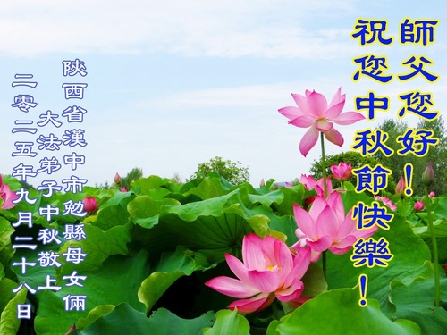 Falun-Dafa-Praktizierende in der chinesischen Provinz Shaanxi wünschen dem verehrten Meister respektvoll ein frohes Mittherbstfest! (18 Grüße)