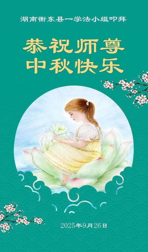 (Minghui.org) Zum Mittherbstfest senden Falun-Dafa-Praktizierende aus aller Welt Glückwünsche und Grußkarten an die Minghui-Website. Damit wünschen sie dem verehrten Meister Li Hongzhi respektvoll ein frohes Fest und danken für die Lehre des Falun Dafa mit den universellen Werten Wahrhaftigkeit, Güte und Nachsicht.