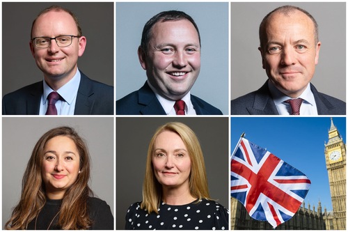 Erste Reihe (v.l.n.r.): Die Abgeordneten Andrew Cooper, Ian Murray, Mike KaneZweite Reihe (v.l.n.r.): Feryal Clark, Jo Platt