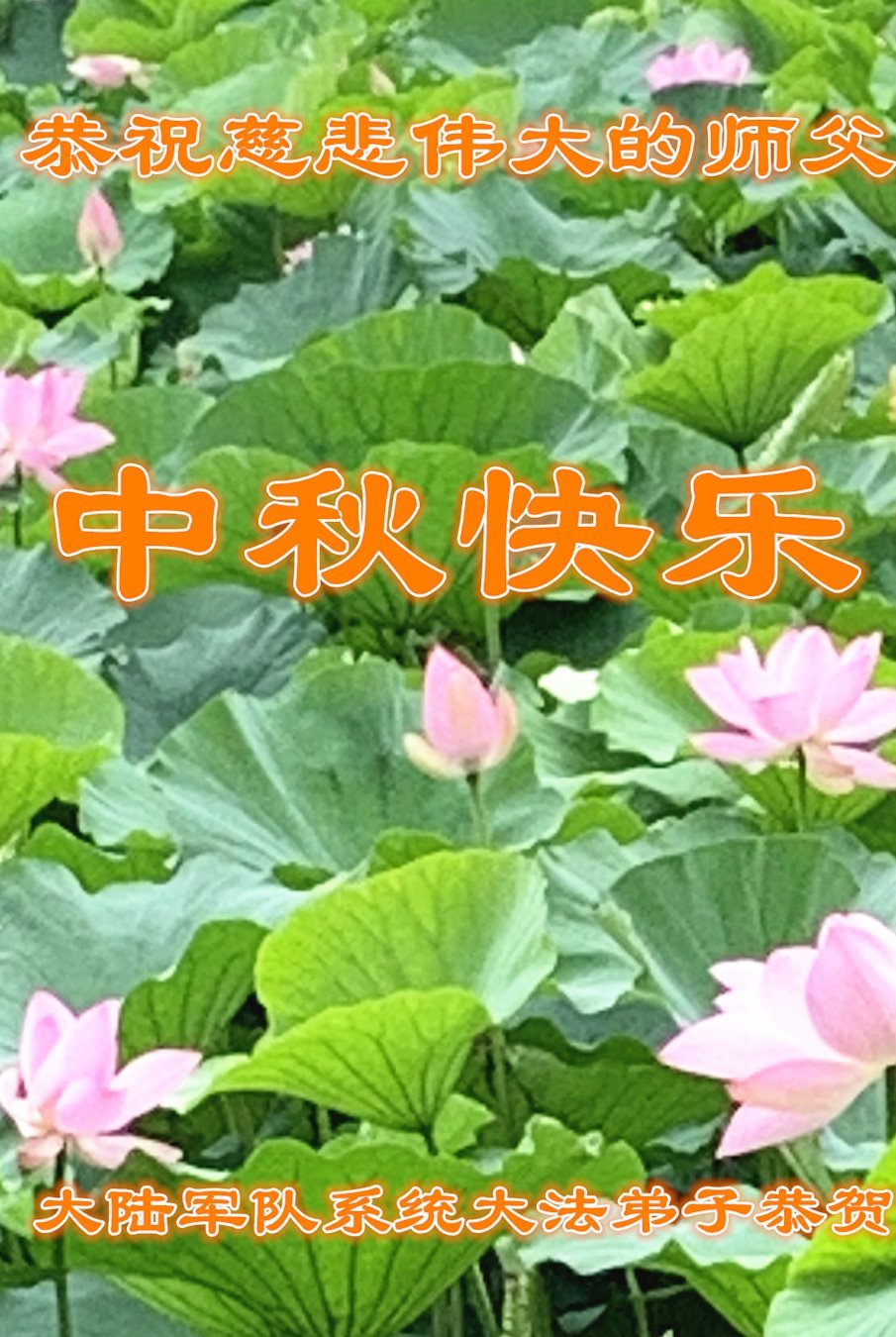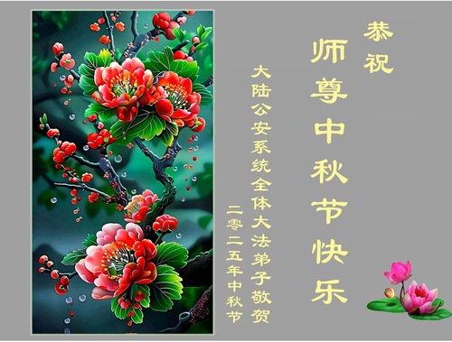 (Minghui.org) Anlässlich des Mittherbstfestes hat die Minghui-Website Gruß- und Dankesworte von Dafa-Jüngern erhalten, die in Gerichten, Staatsanwaltschaften, den Abteilungen der Öffentlichen Sicherheit, der Justiz und in der Regierung tätig sind. Grüße kamen auch von aktiven und pensionierten Soldaten des chinesischen Militärs. Die Dafa-Jünger wünschen dem barmherzigen und großartigen Meister ein frohes Mittherbstfest!