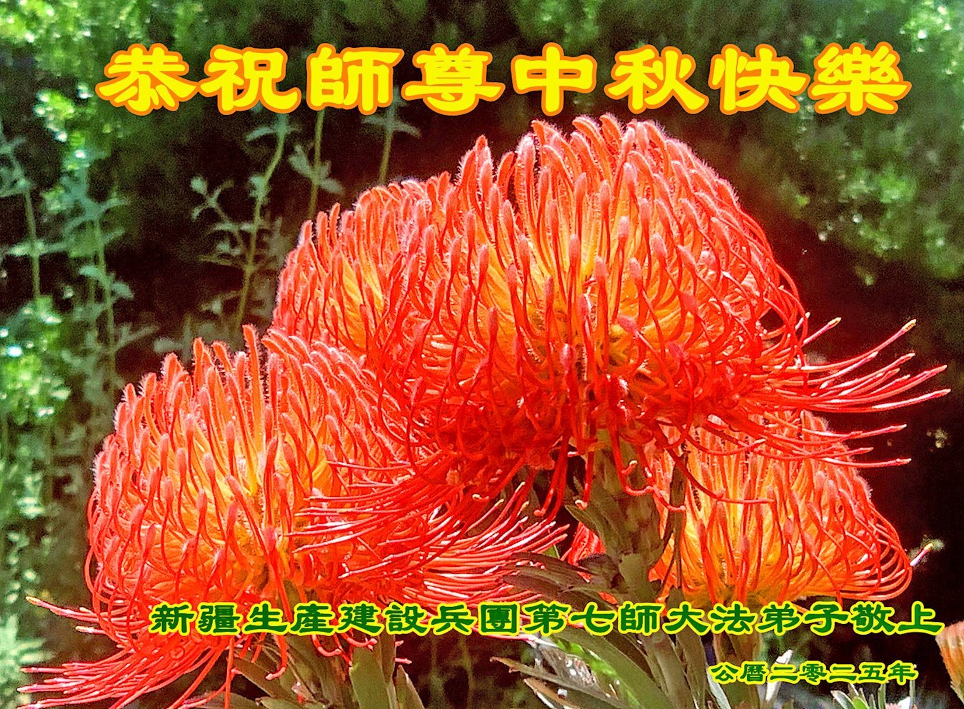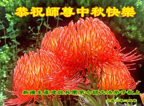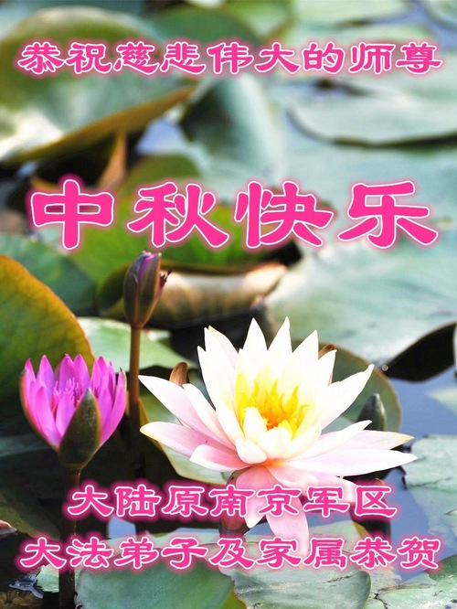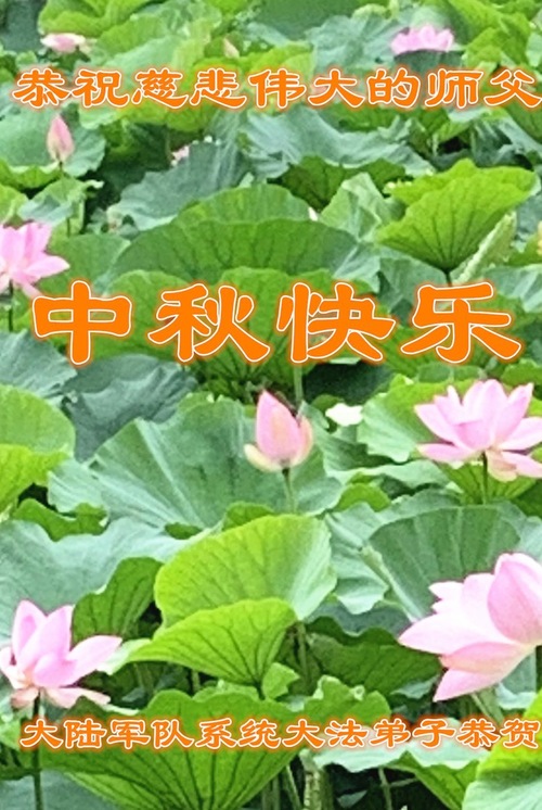 Ein in der Armee tätiger Dafa-Schüler schreibt in seiner Glückwunschkarte an den Meister: „Anlässlich des Mittherbstfestes vermissen die Jünger den Meister noch mehr! Verehrter Meister, Sie haben alles hergegeben, um Kosmos neu zu erschaffen und alle Lebewesen zu erretten. Unser Dank ist nicht mit Worten zu fassen! Der Wille des Jüngers, sich zu kultivieren, ist fest wie ein Fels. Ich glaube an den Meister und das Fa, ohne zu schwanken. Als Ihr Jünger werde ich die letzte begrenzte Kultivierungszeit voll nutzen, noch fleißiger vorankommen, mich solide kultivieren, mich dem Dafa angleichen, noch mehr Menschen erretten, mein Gelübde einlösen, zur Vollendung schreiten und mit dem Meister zurückkehren!“