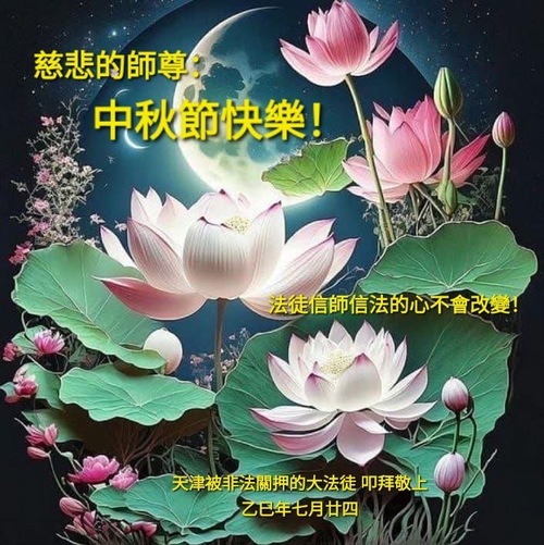 (Minghui.org) Zum Mittherbstfest senden Falun-Dafa-Praktizierende aus aller Welt Glückwünsche und Grußkarten an die Minghui-Website. Damit wünschen sie dem verehrten Meister Li Hongzhi respektvoll ein frohes Fest und danken für die Lehre des Falun Dafa mit den universellen Werten Wahrhaftigkeit, Güte und Nachsicht.