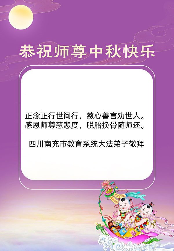 Falun-Dafa-Praktizierende aus dem Bildungssystem in Festlandchina wünschen dem verehrten Meister respektvoll ein frohes Mittherbstfest! (19 Grüße)