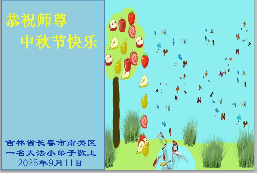 (Minghui.org) Zum Mittherbstfest senden Falun-Dafa-Praktizierende aus aller Welt Glückwünsche und Grußkarten an die Minghui-Website. Damit wünschen sie dem verehrten Meister Li Hongzhi respektvoll ein frohes Fest und danken für die Lehre des Falun Dafa mit den universellen Werten Wahrhaftigkeit, Güte und Nachsicht.