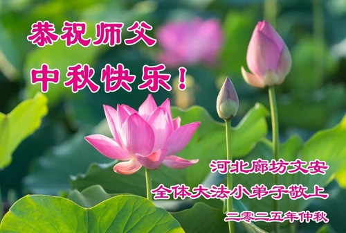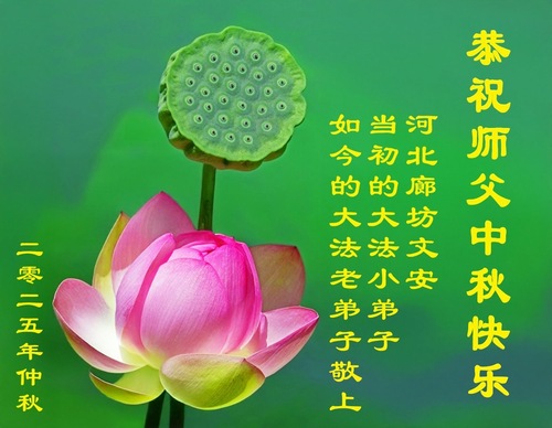 Junge Falun-Dafa-Praktizierende wünschen dem verehrten Meister respektvoll ein frohes Mittherbstfest! (19 Grüße)