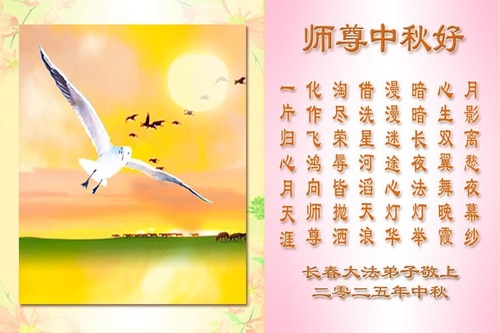 Falun-Dafa-Praktizierende in der chinesischen Stadt Changchun wünschen dem verehrten Meister respektvoll ein frohes Mittherbstfest! (19 Grüße)