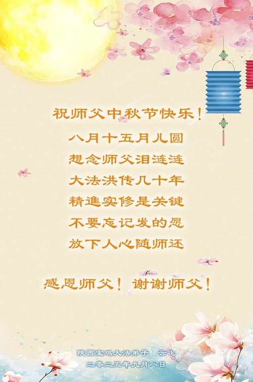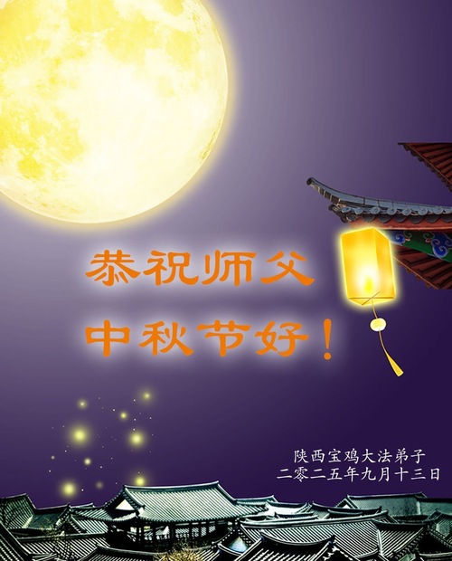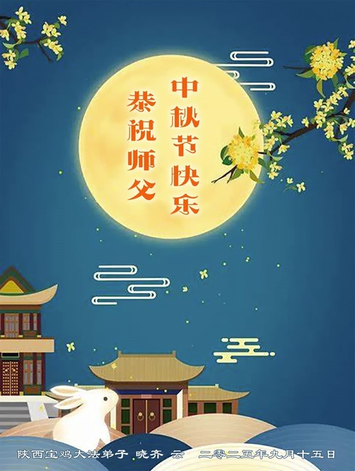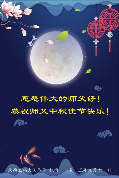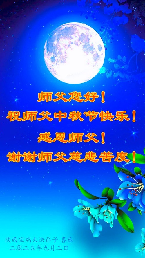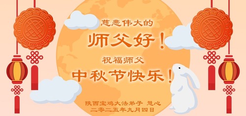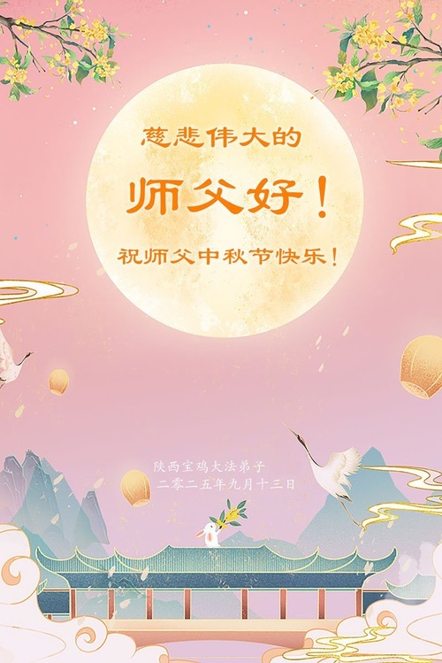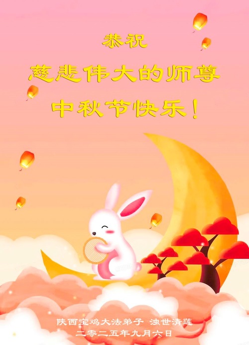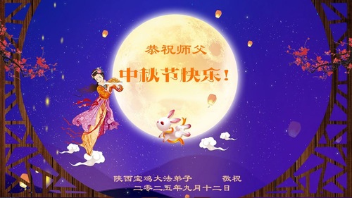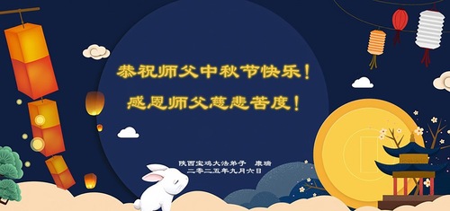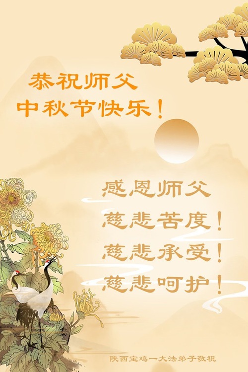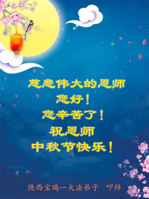Falun-Dafa-Praktizierende in der chinesischen Provinz Shaanxi wünschen dem verehrten Meister respektvoll ein frohes Mittherbstfest! (18 Grüße)