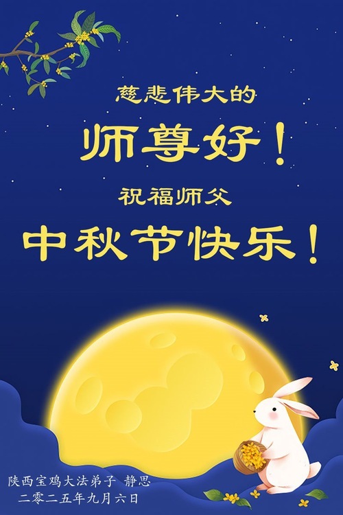(Minghui.org) Zum Mittherbstfest senden Falun-Dafa-Praktizierende aus aller Welt Glückwünsche und Grußkarten an die Minghui-Website. Damit wünschen sie dem verehrten Meister Li Hongzhi respektvoll ein frohes Fest und danken für die Lehre des Falun Dafa mit den universellen Werten Wahrhaftigkeit, Güte und Nachsicht.