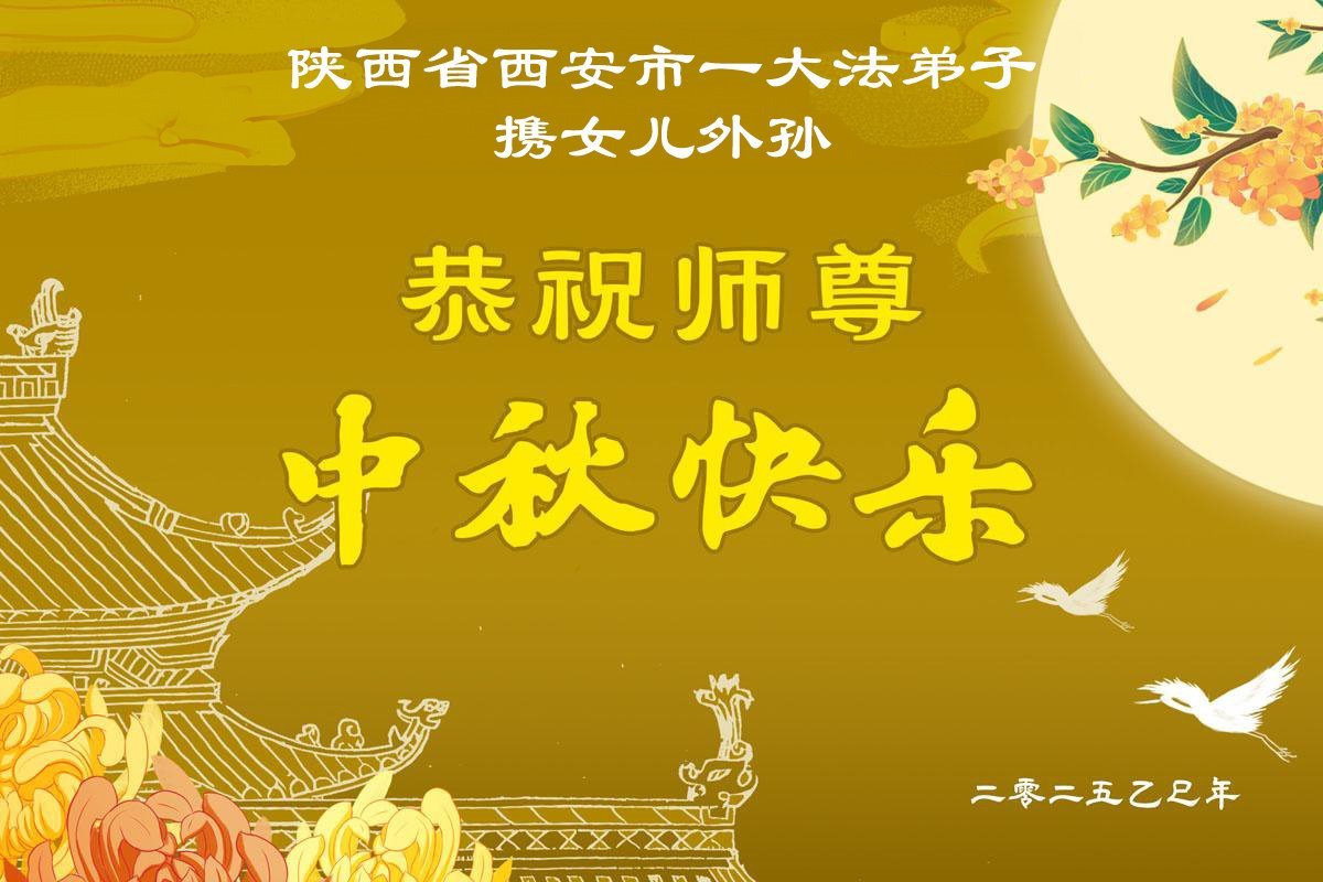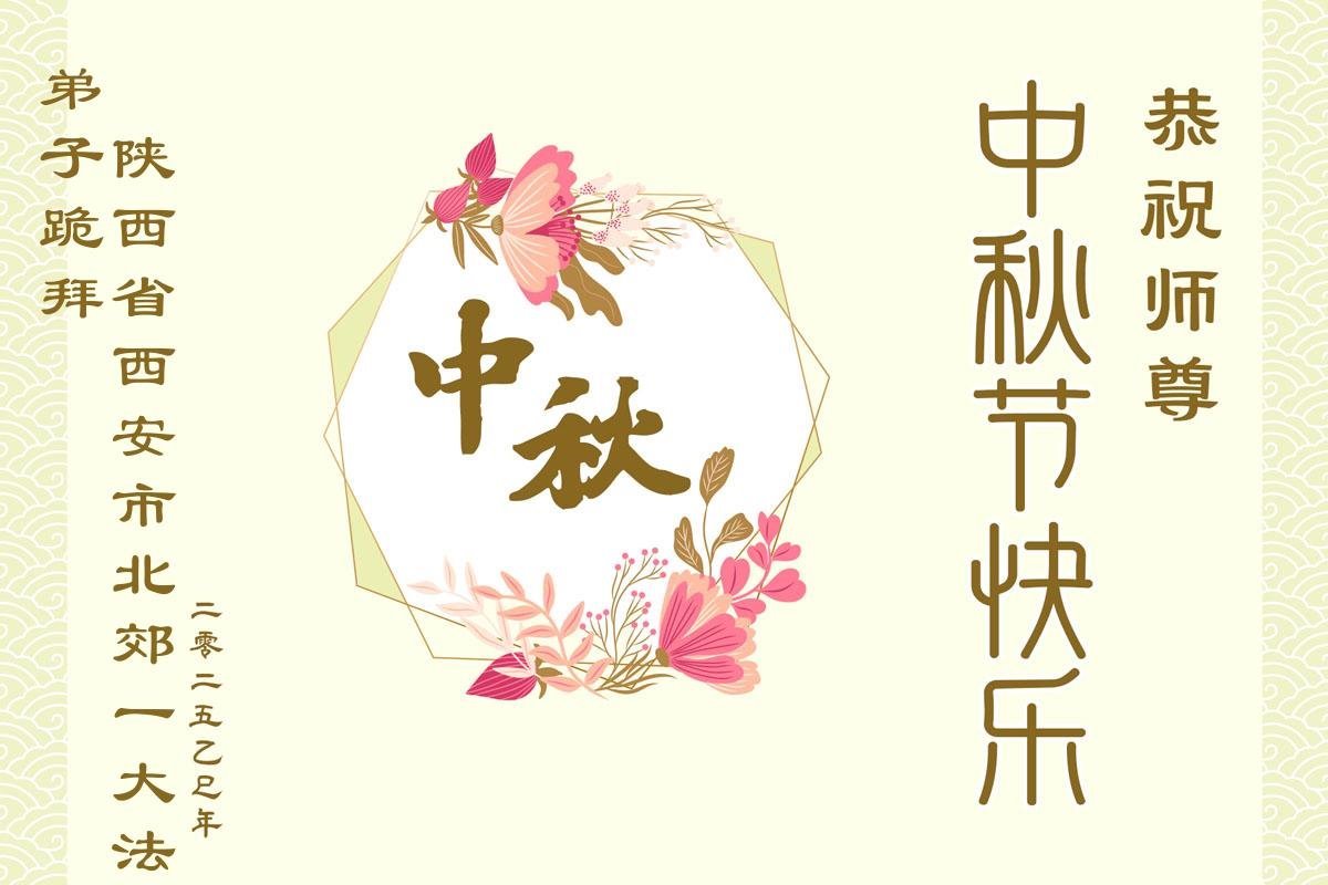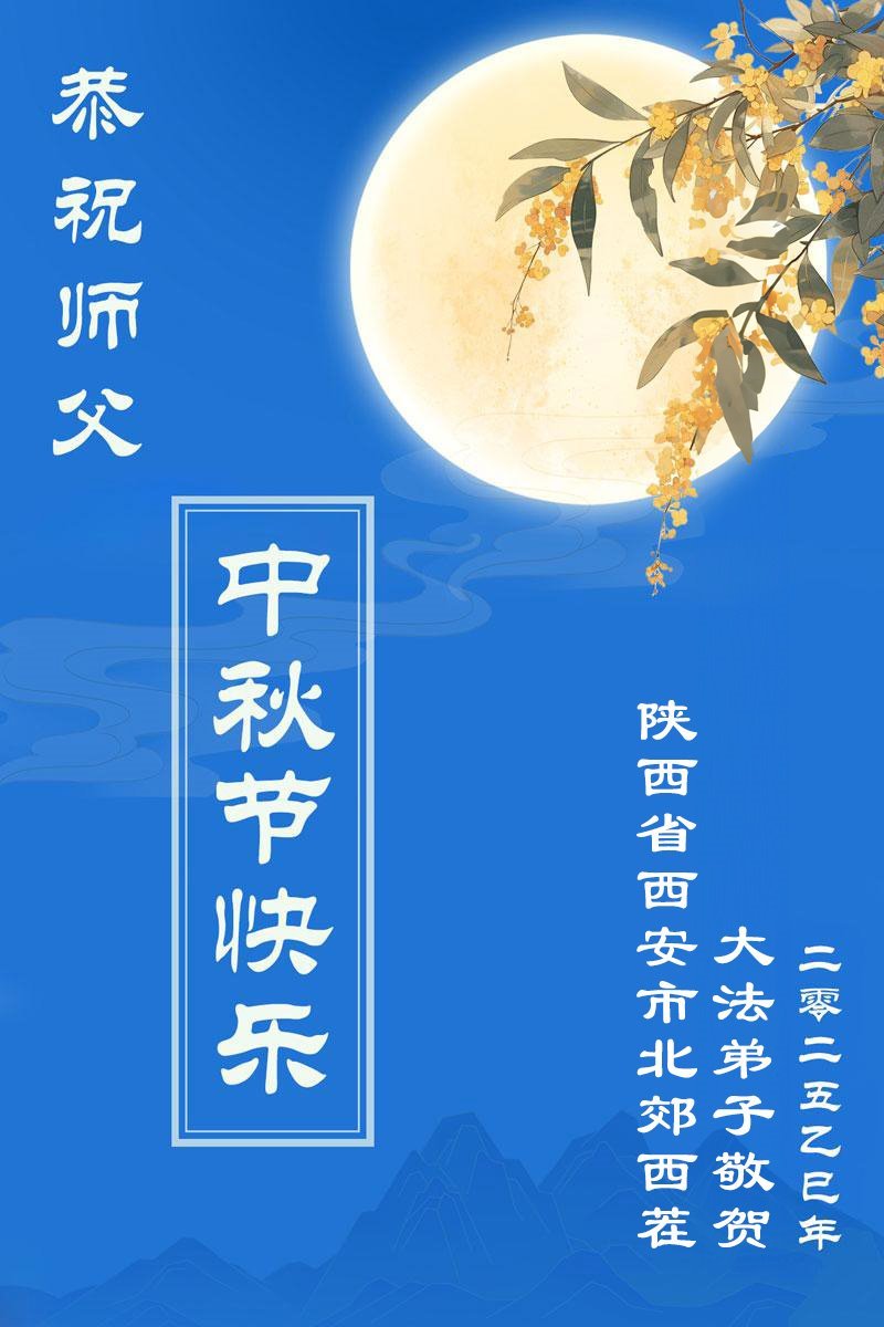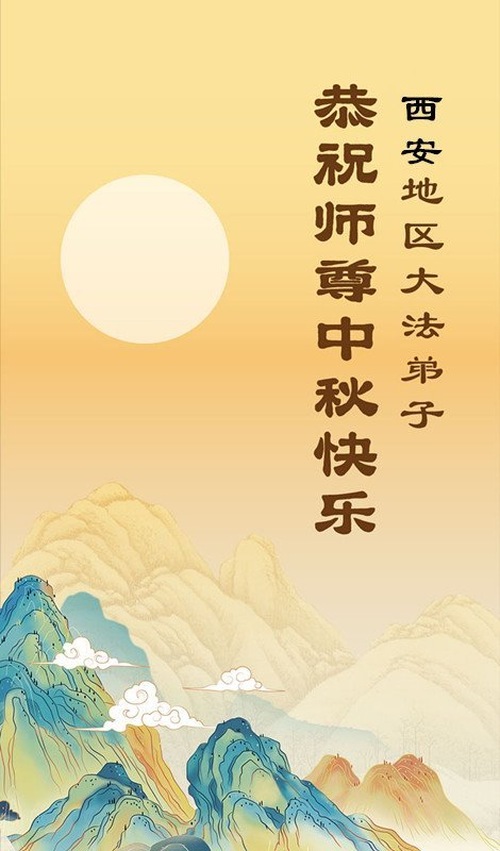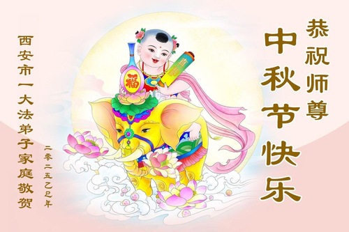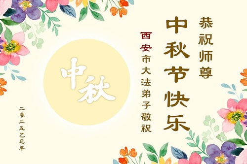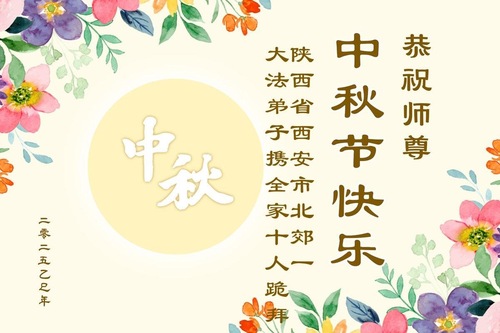 Falun-Dafa-Praktizierende in der chinesischen Stadt Xi’an wünschen dem verehrten Meister respektvoll ein frohes Mittherbstfest! (18 Grüße)