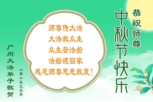 Falun-Dafa-Praktizierende in der chinesischen Stadt Guangzhou wünschen dem verehrten Meister respektvoll ein frohes Mittherbstfest! (18 Grüße)