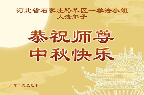 Falun-Dafa-Praktizierende in der chinesischen Stadt Shijiazhuang wünschen dem verehrten Meister respektvoll ein frohes Mittherbstfest! (20 Grüße)