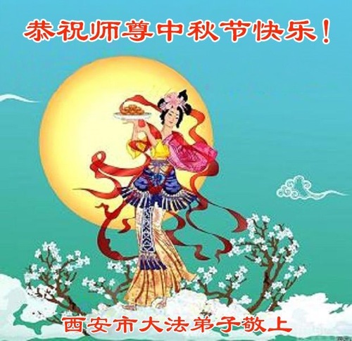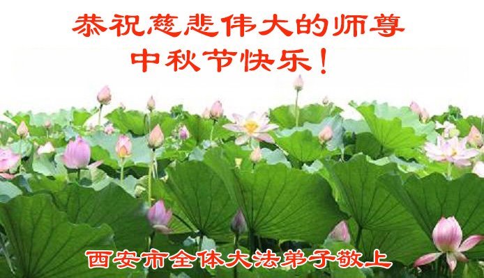 Falun-Dafa-Praktizierende in der chinesischen Stadt Xi’an wünschen dem verehrten Meister respektvoll ein frohes Mittherbstfest! (18 Grüße)