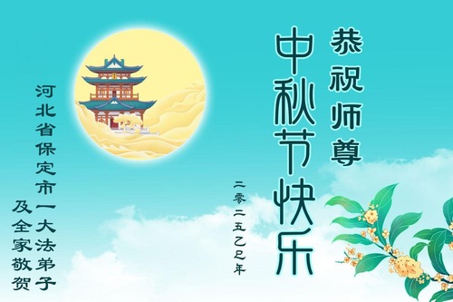 Falun-Dafa-Praktizierende in der chinesischen Stadt Baoding wünschen dem verehrten Meister respektvoll ein frohes Mittherbstfest! (19 Grüße)