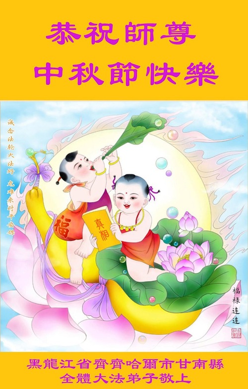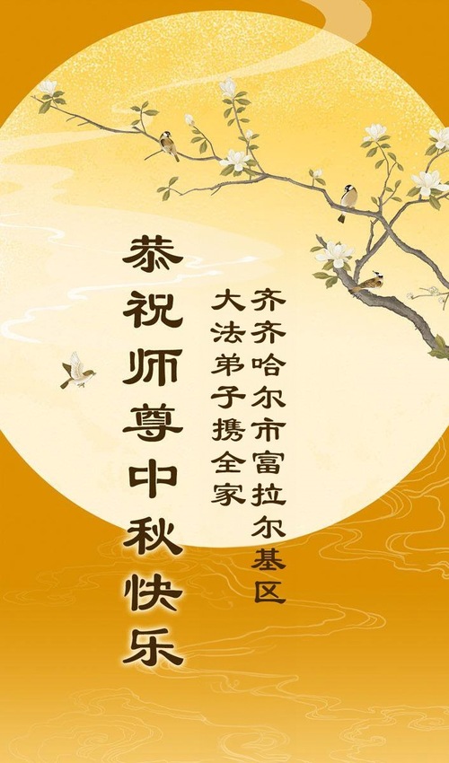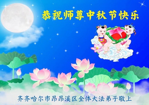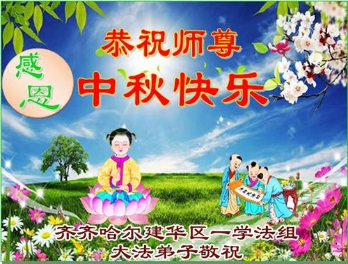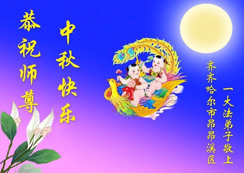 Falun-Dafa-Praktizierende in der chinesischen Stadt Qiqihar wünschen dem verehrten Meister respektvoll ein frohes Mittherbstfest! (18 Grüße)
