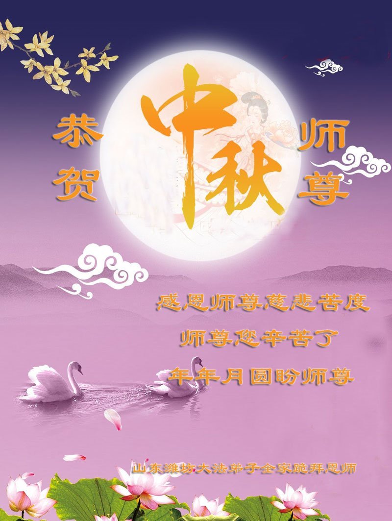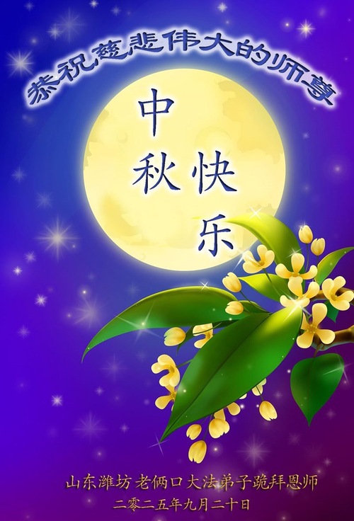 Falun-Dafa-Praktizierende in der chinesischen Stadt Weifang wünschen dem verehrten Meister respektvoll ein frohes Mittherbstfest! (21 Grüße)