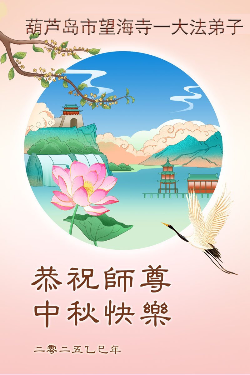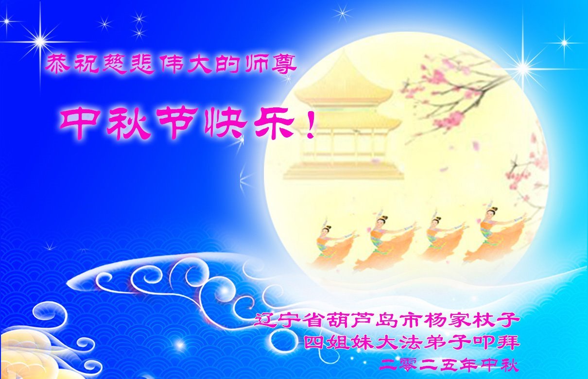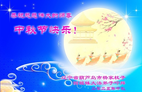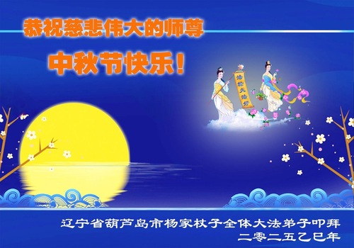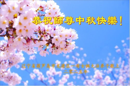 Falun-Dafa-Praktizierende in der chinesischen Stadt Huludao wünschen dem verehrten Meister respektvoll ein frohes Mittherbstfest! (24 Grüße)