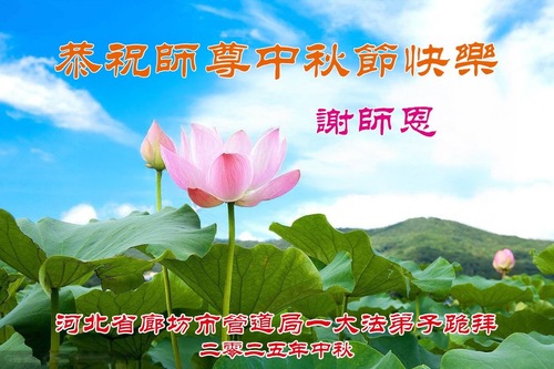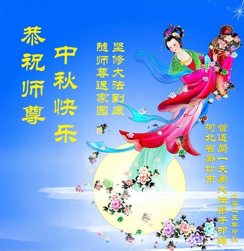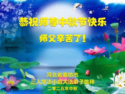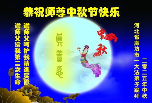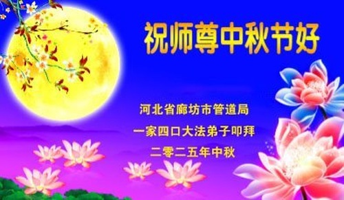 Falun-Dafa-Praktizierende in der chinesischen Stadt Langfang wünschen dem verehrten Meister respektvoll ein frohes Mittherbstfest! (19 Grüße)