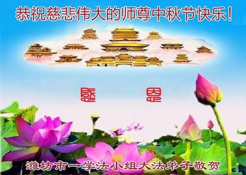 Falun-Dafa-Praktizierende in der chinesischen Stadt Weifang wünschen dem verehrten Meister respektvoll ein frohes Mittherbstfest! (20 Grüße)