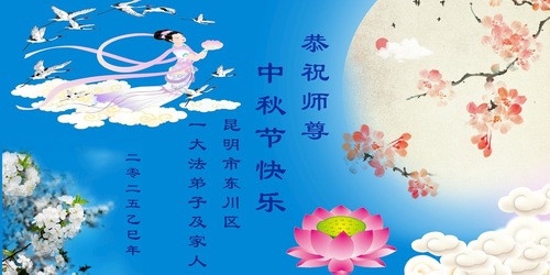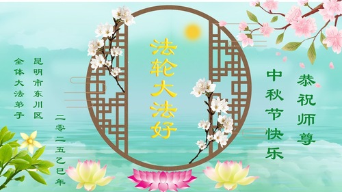 Falun-Dafa-Praktizierende in der chinesischen Provinz Yunnan wünschen dem verehrten Meister respektvoll ein frohes Mittherbstfest! (18 Grüße)