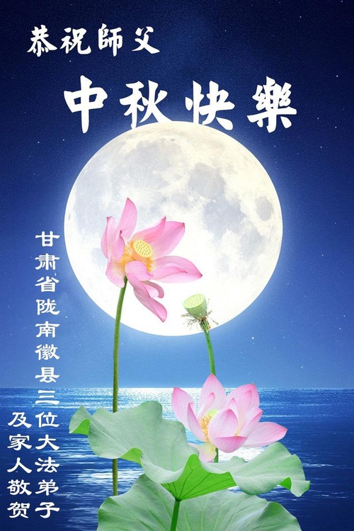 Falun-Dafa-Praktizierende in der chinesischen Provinz Gansu wünschen dem verehrten Meister respektvoll ein frohes Mittherbstfest! (19 Grüße)