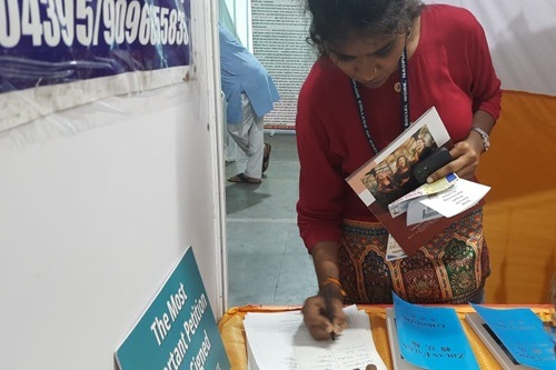 Akash und seine Freunde erkunden Falun Dafa auf der Ausstellung in Nagpur