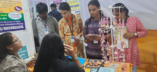 (Minghui.org) Falun-Dafa-Praktizierende aus Nagpur, Indien, nahmen vom 12. bis 14. September 2025 an der Gramayan Abhyuday Sewa Ausstellung in der Taya Hoffungshalle teil, um dort Falun Dafa vorzustellen. Sie machten die Besucher an ihrem Stand mit der Praxis bekannt und informierten sie über die anhaltende Verfolgung in China.