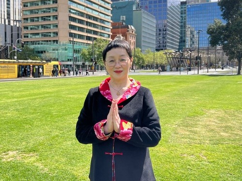 Sie und ihr Mann betrieben damals ein kleines Restaurant und einen Laden in Adelaide und arbeiteten Tag und Nacht. Mit 30 Jahren erlitt sie einen Bandscheibenvorfall. Schon morgens beim Sockenanziehen brauchte sie Hilfe von ihrer Familie und musste ihren Rücken 40 Minuten lang mit einer Spektrallampe wärmen, bevor sie in den Tag starten konnte. Im Juni 1999 brachte ihr ein Verwandter ein Exemplar des Zhuan Falun. Sie blieb die ganze Nacht wach und las darin. Am nächsten Tag las sie immer wieder, wenn sie Zeit hatte, während sie im Laden arbeitete – sie konnte das Buch nicht mehr weglegen. Drei Tage später erinnerte ihre Familie sie daran, dass sie die Spektrallampe nicht benutzt hatte. Da bemerkte sie, dass ihr Rücken schmerzfrei war. Sie nahm alle Schriften des Meisters mit nach Hause und las eifrig darin. Je mehr sie las, desto wärmer und heller fühlte sie sich innerlich. Auch ihr Mann und ihre Kinder begannen zu praktizieren.