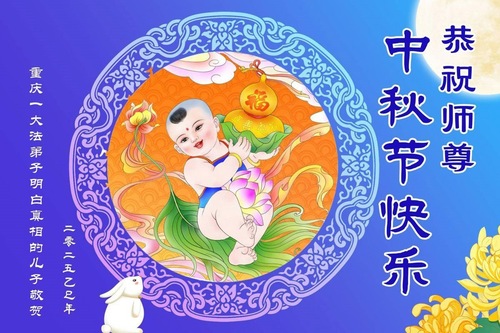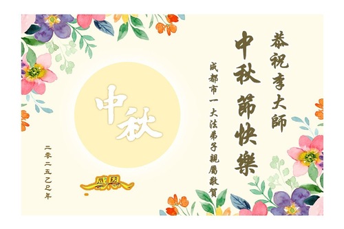 (Minghui.org) Zum Mittherbstfest senden Falun-Dafa-Praktizierende aus aller Welt Glückwünsche und Grußkarten an die Minghui-Website. Damit wünschen sie dem verehrten Meister Li Hongzhi respektvoll ein frohes Fest und danken für die Lehre des Falun Dafa mit den universellen Werten Wahrhaftigkeit, Güte und Nachsicht.