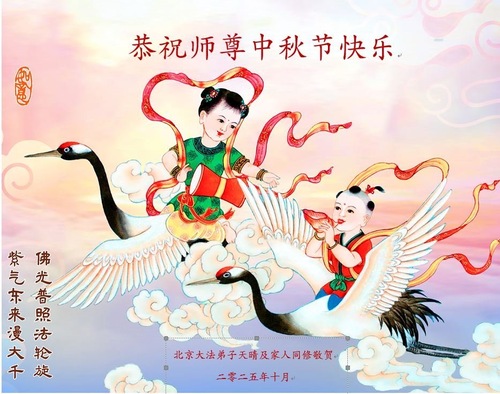 (Minghui.org) Zum Mittherbstfest senden Falun-Dafa-Praktizierende aus aller Welt Glückwünsche und Grußkarten an die Minghui-Website. Damit wünschen sie dem verehrten Meister Li Hongzhi respektvoll ein frohes Fest und danken für die Lehre des Falun Dafa mit den universellen Werten Wahrhaftigkeit, Güte und Nachsicht.