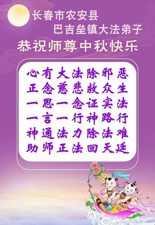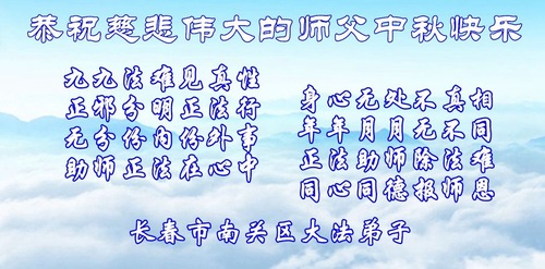 Falun-Dafa-Praktizierende in der chinesischen Stadt Changchun wünschen dem verehrten Meister respektvoll ein frohes Mittherbstfest! (101 Grüße)