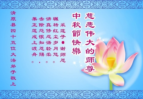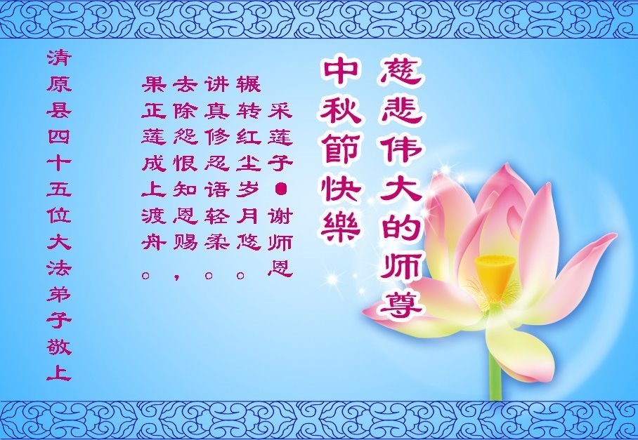 (Minghui.org) Zum Mittherbstfest senden Falun-Dafa-Praktizierende aus aller Welt Glückwünsche und Grußkarten an die Minghui-Website. Damit wünschen sie dem verehrten Meister Li Hongzhi respektvoll ein frohes Fest und danken für die Lehre des Falun Dafa mit den universellen Werten Wahrhaftigkeit, Güte und Nachsicht.