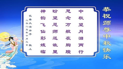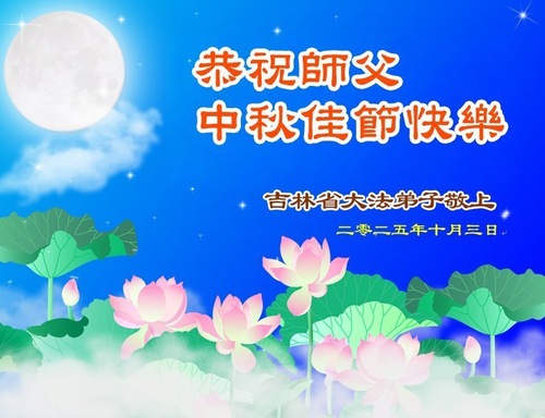 Falun-Dafa-Praktizierende in der chinesischen Provinz Jilin wünschen dem verehrten Meister respektvoll ein frohes Mittherbstfest! (105 Grüße)