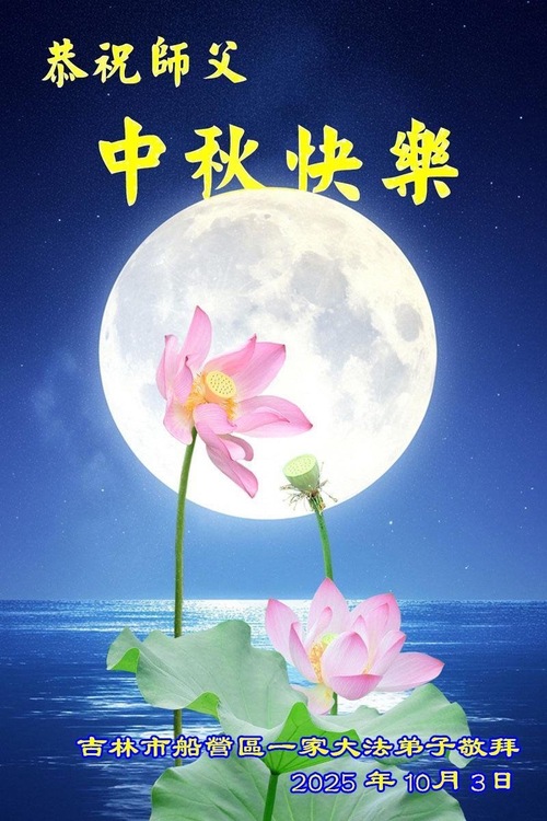 (Minghui.org) Zum Mittherbstfest senden Falun-Dafa-Praktizierende aus aller Welt Glückwünsche und Grußkarten an die Minghui-Website. Damit wünschen sie dem verehrten Meister Li Hongzhi respektvoll ein frohes Fest und danken für die Lehre des Falun Dafa mit den universellen Werten Wahrhaftigkeit, Güte und Nachsicht.