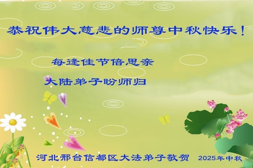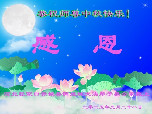 Falun-Dafa-Praktizierende in der chinesischen Provinz Hebei wünschen dem verehrten Meister respektvoll ein frohes Mittherbstfest! (101 Grüße)
