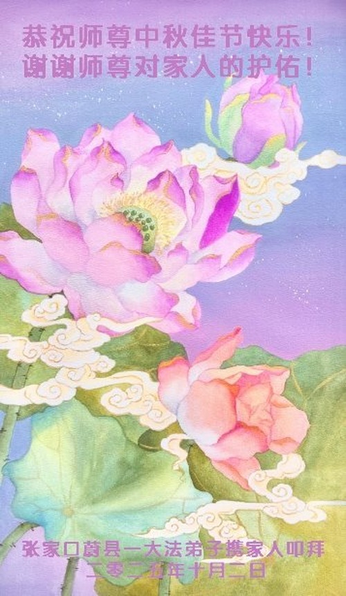 (Minghui.org) Zum Mittherbstfest senden Falun-Dafa-Praktizierende aus aller Welt Glückwünsche und Grußkarten an die Minghui-Website. Damit wünschen sie dem verehrten Meister Li Hongzhi respektvoll ein frohes Fest und danken für die Lehre des Falun Dafa mit den universellen Werten Wahrhaftigkeit, Güte und Nachsicht.