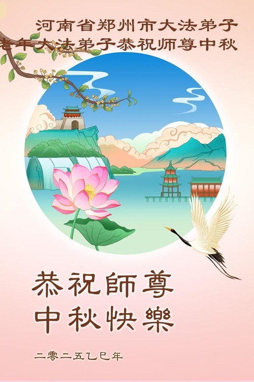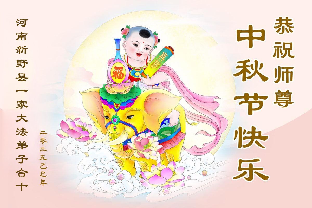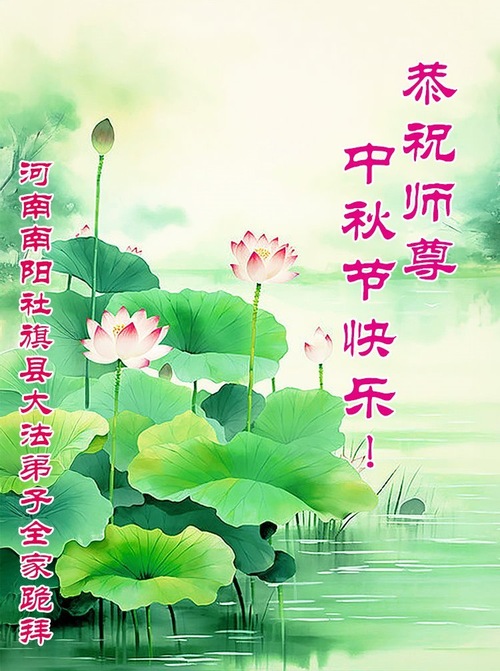 Falun-Dafa-Praktizierende in der chinesischen Provinz Henan wünschen dem verehrten Meister respektvoll ein frohes Mittherbstfest! (84 Grüße)