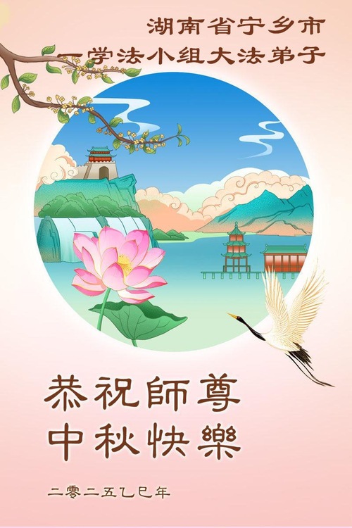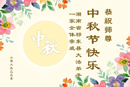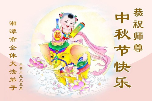 Falun-Dafa-Praktizierende in den chinesischen Provinzen Hubei und Hunan wünschen dem verehrten Meister respektvoll ein frohes Mittherbstfest! (101 Grüße)