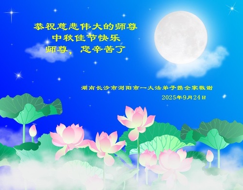 (Minghui.org) Zum Mittherbstfest senden Falun-Dafa-Praktizierende aus aller Welt Glückwünsche und Grußkarten an die Minghui-Website. Damit wünschen sie dem verehrten Meister Li Hongzhi respektvoll ein frohes Fest und danken für die Lehre des Falun Dafa mit den universellen Werten Wahrhaftigkeit, Güte und Nachsicht.