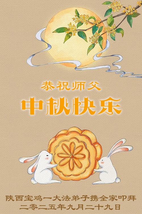 (Minghui.org) Zum Mittherbstfest senden Falun-Dafa-Praktizierende aus aller Welt Glückwünsche und Grußkarten an die Minghui-Website. Damit wünschen sie dem verehrten Meister Li Hongzhi respektvoll ein frohes Fest und danken für die Lehre des Falun Dafa mit den universellen Werten Wahrhaftigkeit, Güte und Nachsicht.
