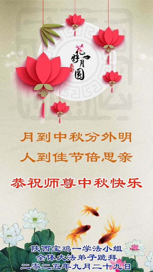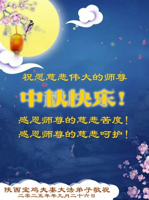Falun-Dafa-Praktizierende in den chinesischen Provinzen Shanxi und Shaanxi wünschen dem verehrten Meister respektvoll ein frohes Mittherbstfest! (95 Grüße)