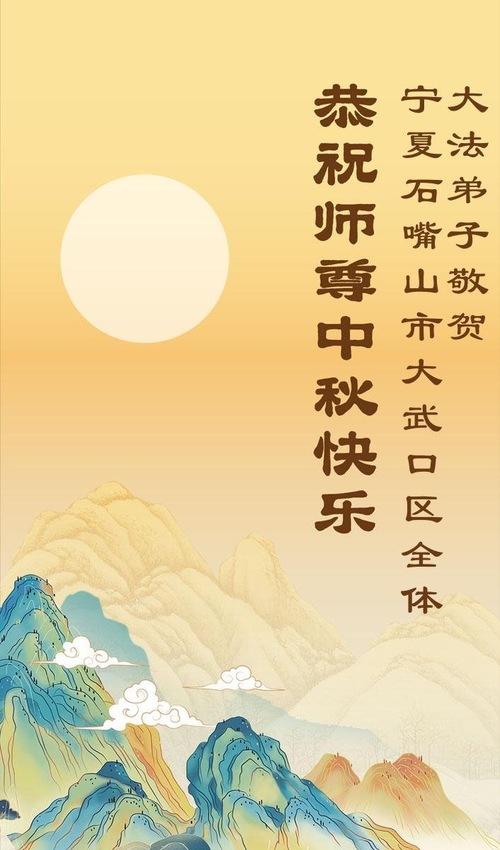 Falun-Dafa-Praktizierende in der autonomen Region Ningxia Hui wünschen dem verehrten Meister respektvoll ein frohes Mittherbstfest! (18 Grüße)