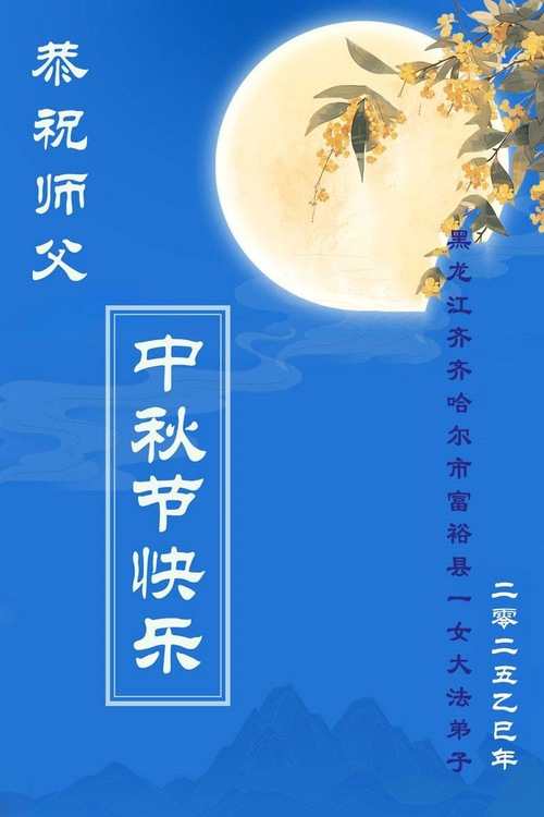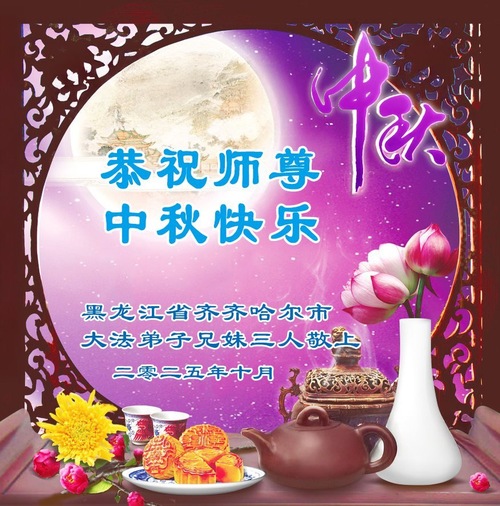 (Minghui.org) Zum Mittherbstfest senden Falun-Dafa-Praktizierende aus aller Welt Glückwünsche und Grußkarten an die Minghui-Website. Damit wünschen sie dem verehrten Meister Li Hongzhi respektvoll ein frohes Fest und danken für die Lehre des Falun Dafa mit den universellen Werten Wahrhaftigkeit, Güte und Nachsicht.