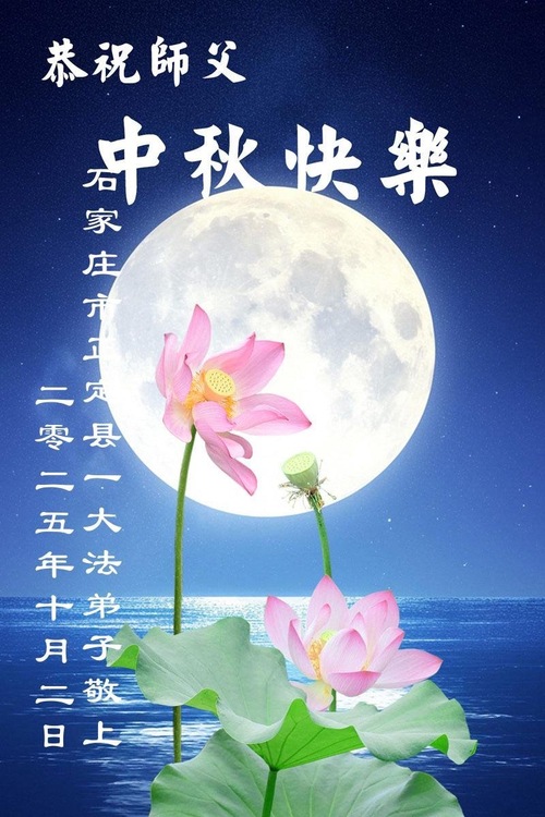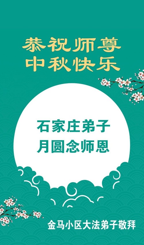 (Minghui.org) Zum Mittherbstfest senden Falun-Dafa-Praktizierende aus aller Welt Glückwünsche und Grußkarten an die Minghui-Website. Damit wünschen sie dem verehrten Meister Li Hongzhi respektvoll ein frohes Fest und danken für die Lehre des Falun Dafa mit den universellen Werten Wahrhaftigkeit, Güte und Nachsicht.