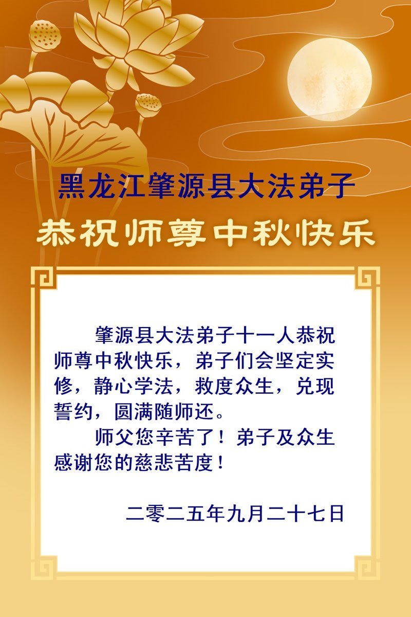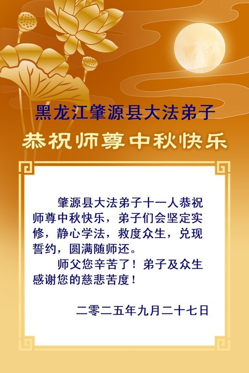 Falun-Dafa-Praktizierende in der Stadt Daqing wünschen dem verehrten Meister respektvoll ein frohes Mittherbstfest! (23 Grüße)