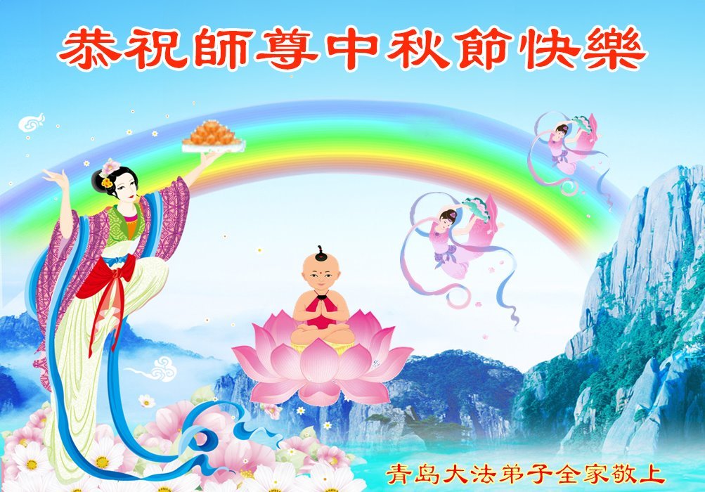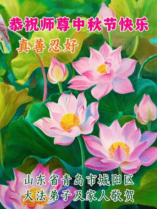 Falun-Dafa-Praktizierende in der Stadt Qingdao wünschen dem verehrten Meister respektvoll ein frohes Mittherbstfest! (24 Grüße)