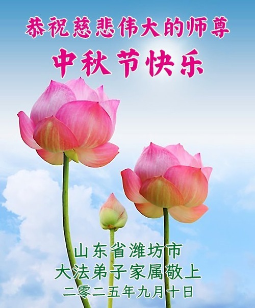 Falun-Dafa-Praktizierende in der Stadt Weifang wünschen dem verehrten Meister respektvoll ein frohes Mittherbstfest! (18 Grüße)