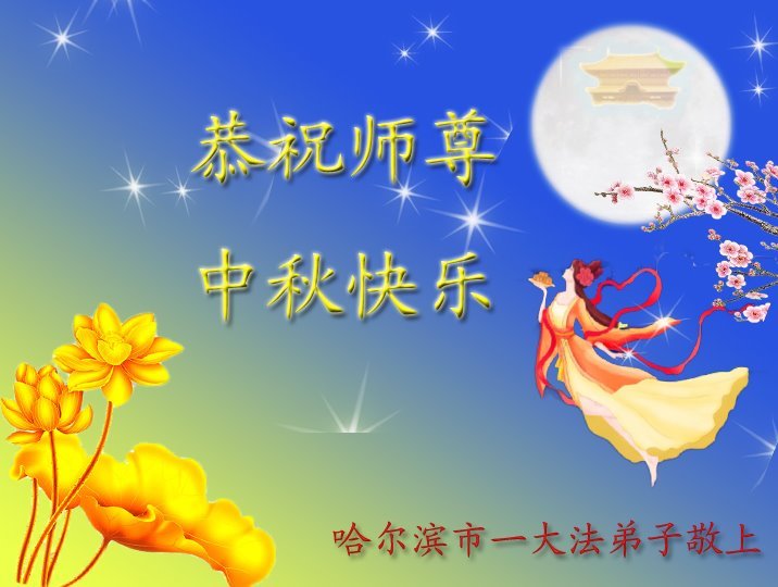 Falun-Dafa-Praktizierende in der chinesischen Stadt Harbin wünschen dem verehrten Meister respektvoll ein frohes Mittherbstfest! (25 Grüße)